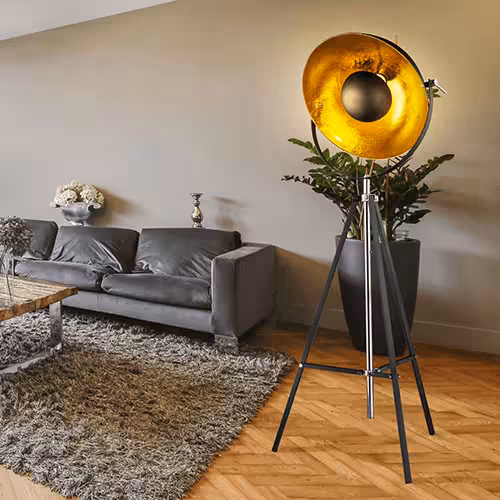 Give your home a unique charm with rustic industrial-style floor lamps. From black and gold tripod lamps to 5-light lamps with glass globes and metal cages - our bestsellers combine trendy materials with industrial design. Benefit from attractive offers to give your room a modern and urban touch in no time at all.