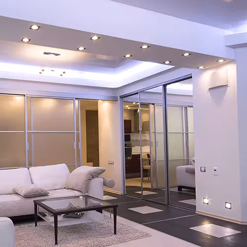 For uniform illumination of a living room of 20 m², we recommend around 6-8 spotlights, with the distance between the spotlights being around 1.5-2 metres. In smaller rooms such as corridors, 3-4 spotlights are often enough to provide sufficient light.