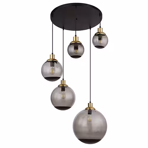 - Suspension lamp, 5 flames, glass spheres, smoked, black, D 65 cmDelivery 1-3 days