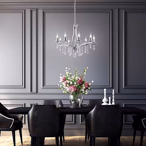 If you want to make a statement, opt for a chandelier with a dimmable LED light source. This allows you to switch between clear illumination and soft light at any time.