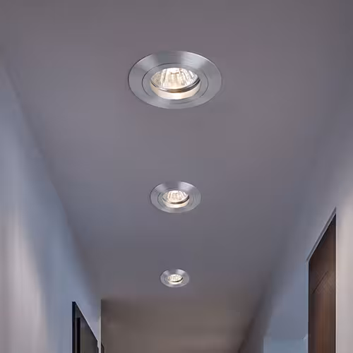 Recessed spotlights with GU10 sockets enable simple bulb replacement. Variants with permanently installed LEDs are recommended for a particularly discreet look . They disappear into the ceiling and allow the light to take centre stage.