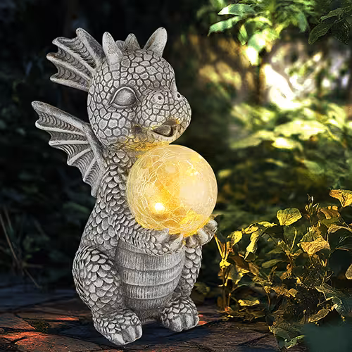 - Set of 2 LED solar lights, 1x dragon with glass ball, 1x elephantDelivery 1-3 days