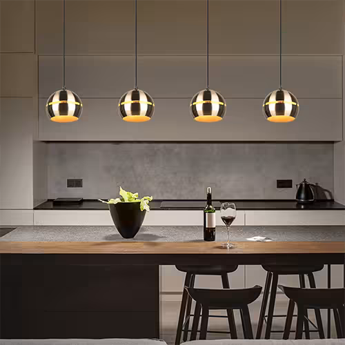 The choice of shape often depends on the individual style and size of the room. Round pendant luminaires, for example, are well suited for even light distribution over round or square tables. Linear or cylindrical and multi-flame shapes, on the other hand, can be suitable for elongated areas such as dining tables or counters, while individual spotlights are at their best above small tables.