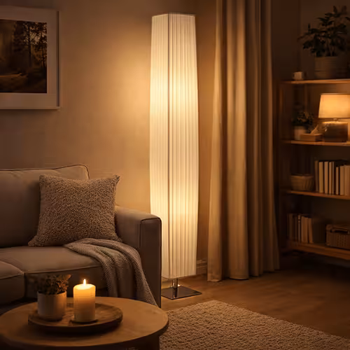 - Torchiere floor lamp: The lampshade here is directed upwards so that the light is scattered indirectly onto the ceiling. This creates soft and diffuse lighting in the room, which can be refined in different colours.