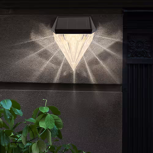 Among flowers, grasses and shrubs, the LED solar wall light comes into its own as a façade light with a diamond design. We recommend placing this light close to plants to emphasise their natural charm. The diamond design also creates an attractive and decorative play of light in the garden, while the weatherproof construction guarantees a high level of protection against moisture and a long service life.
